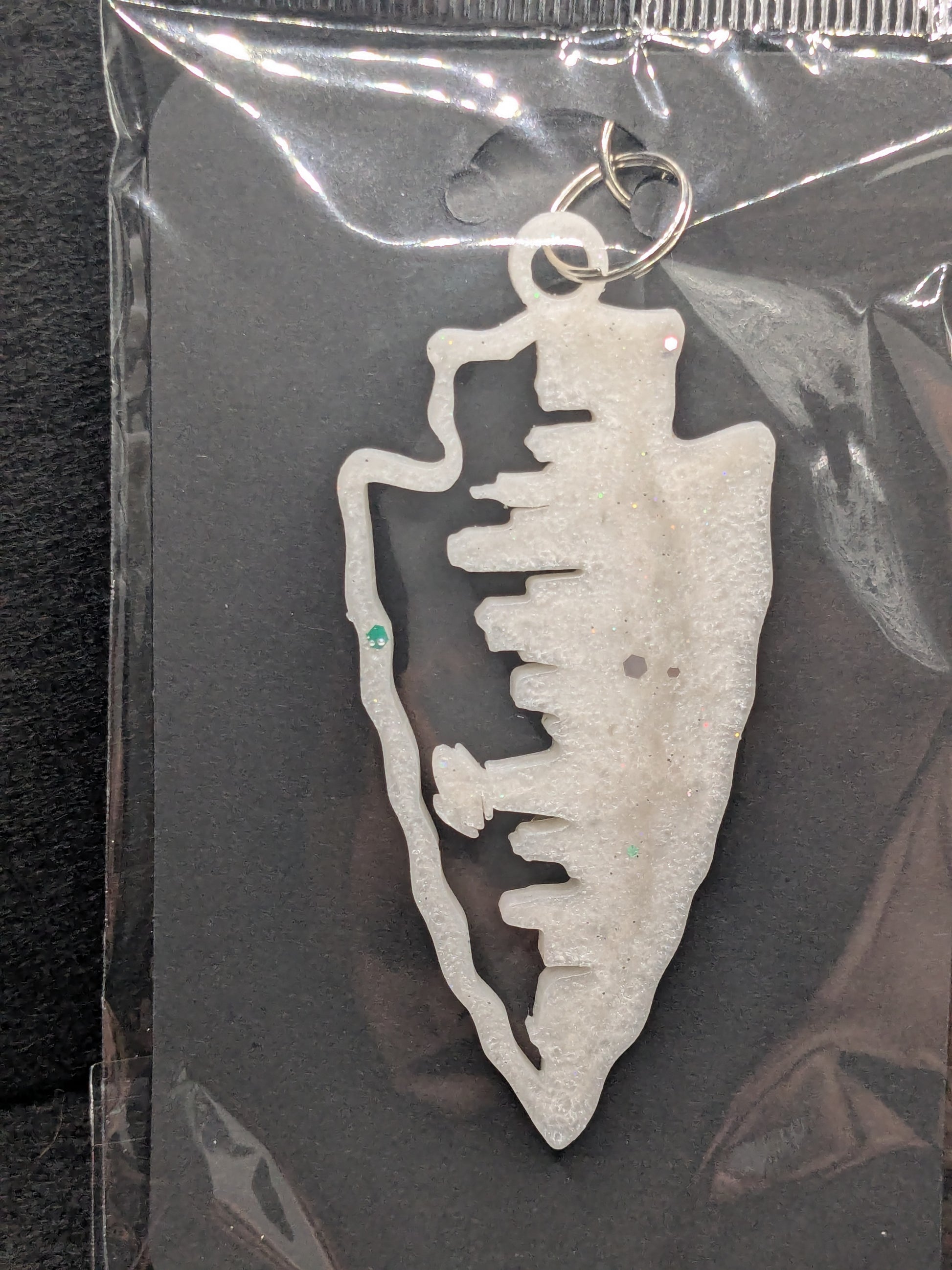 Show your team pride with this bold, handcrafted Chiefs-inspired keychain—featuring the Kansas City skyline inside a classic arrowhead shape.