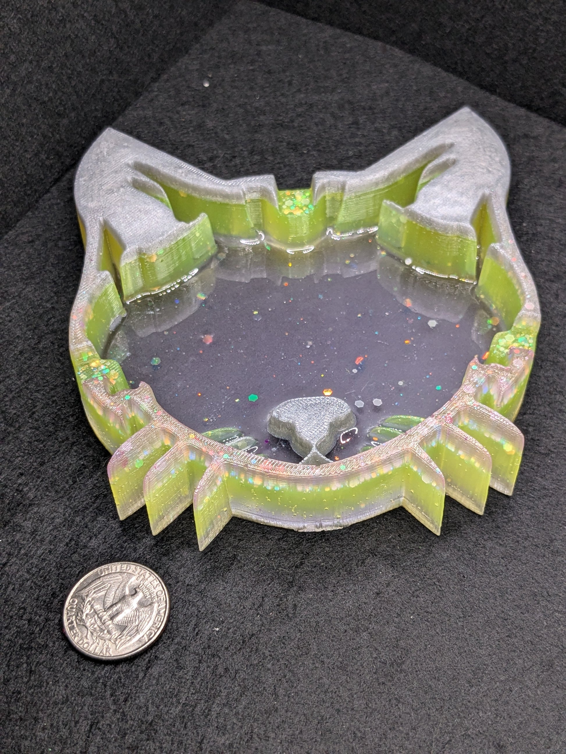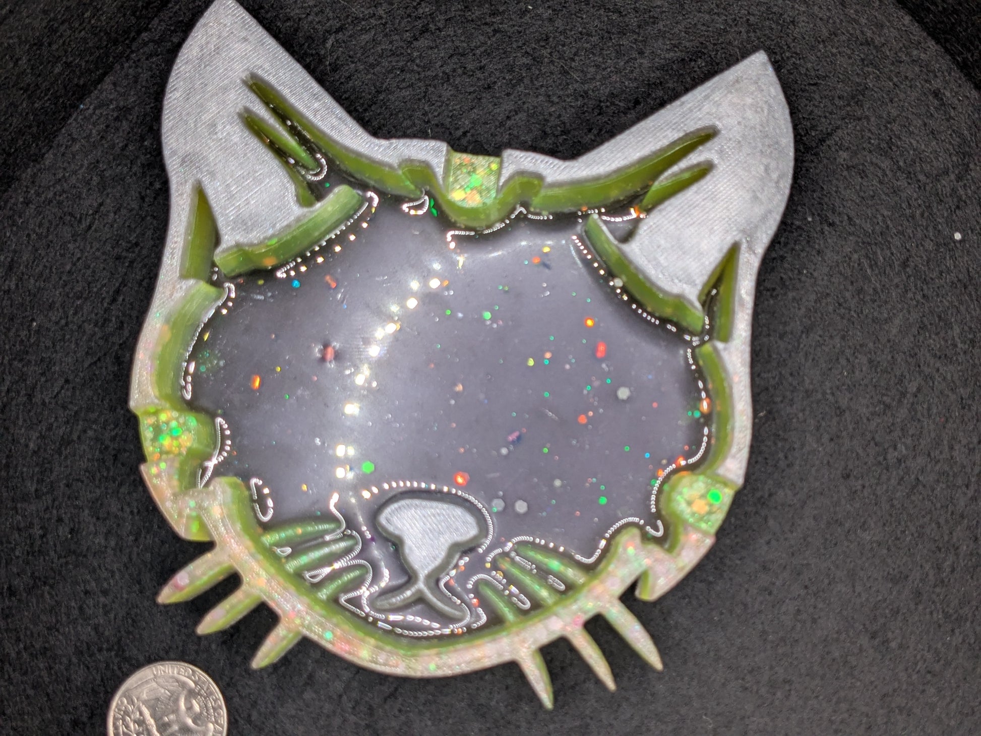 This adorable cat-shaped resin tray is the purr-fect blend of charm and function! Handcrafted by Baby & Bear Designs, each tray features a playful feline silhouette filled with shimmering pigments, glitter, or color blends—no two are ever the same.