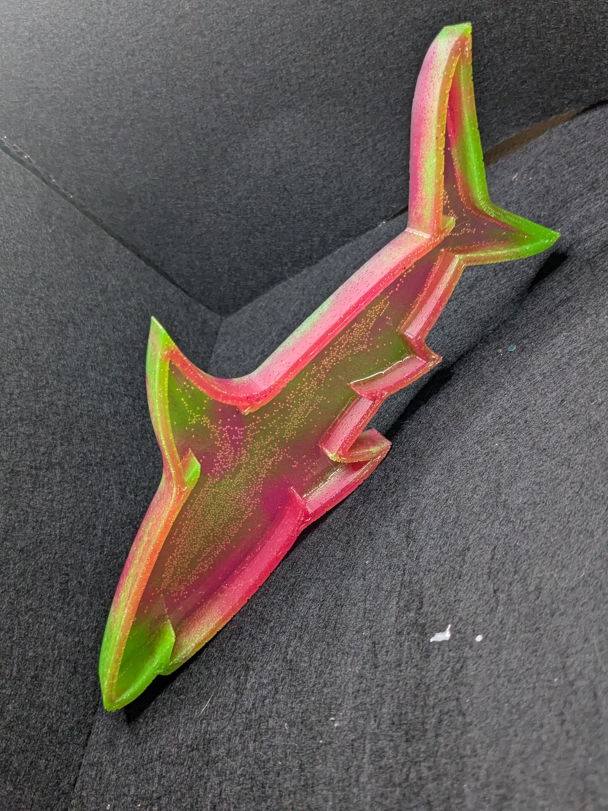 Add a splash of bold personality to your space with our handcrafted resin shark trays, designed and poured by Baby & Bear Designs. Shaped like a fierce and stylish shark, each tray is a one-of-a-kind piece featuring vibrant color blends, shimmering pigments, and custom swirls.